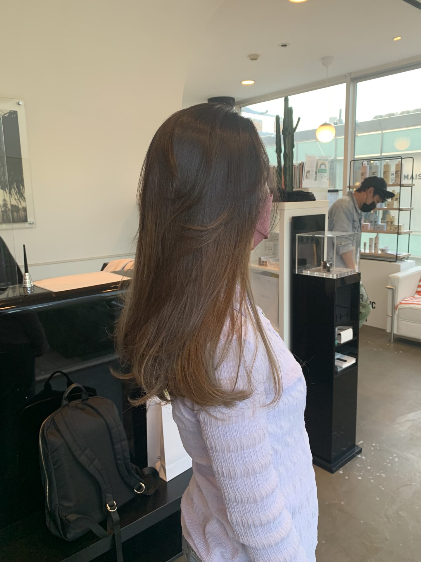 明るい部分はブリーチでハイライトをグラデーションになるように入れています。
