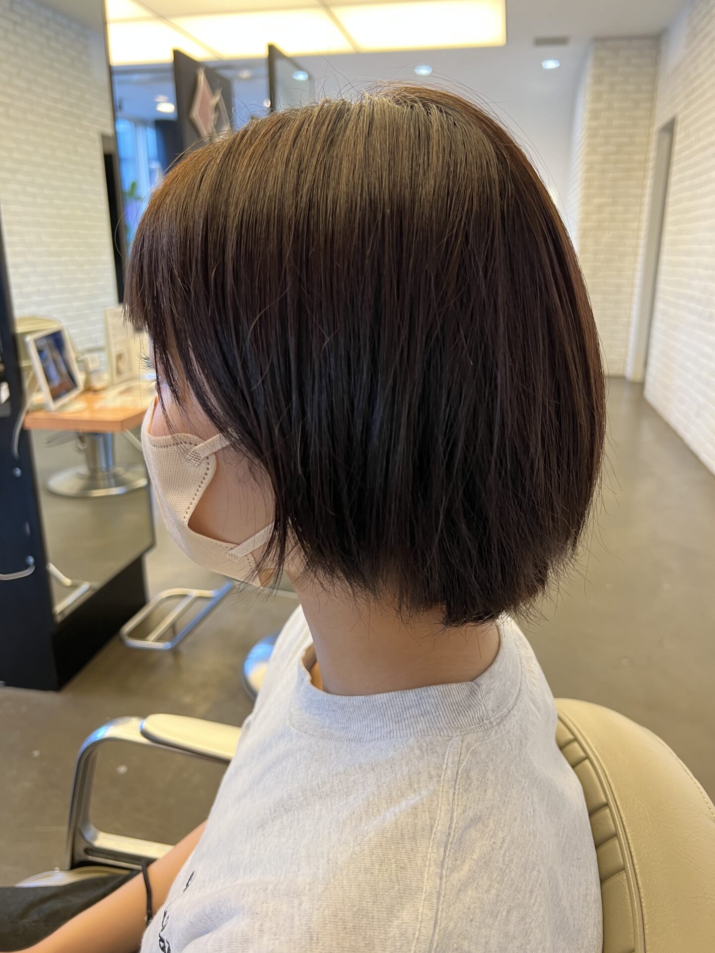 これからショートではなくミニボブっぽいスタイルにしていきたいとの事だったので襟足を切ってミニボブにしました!