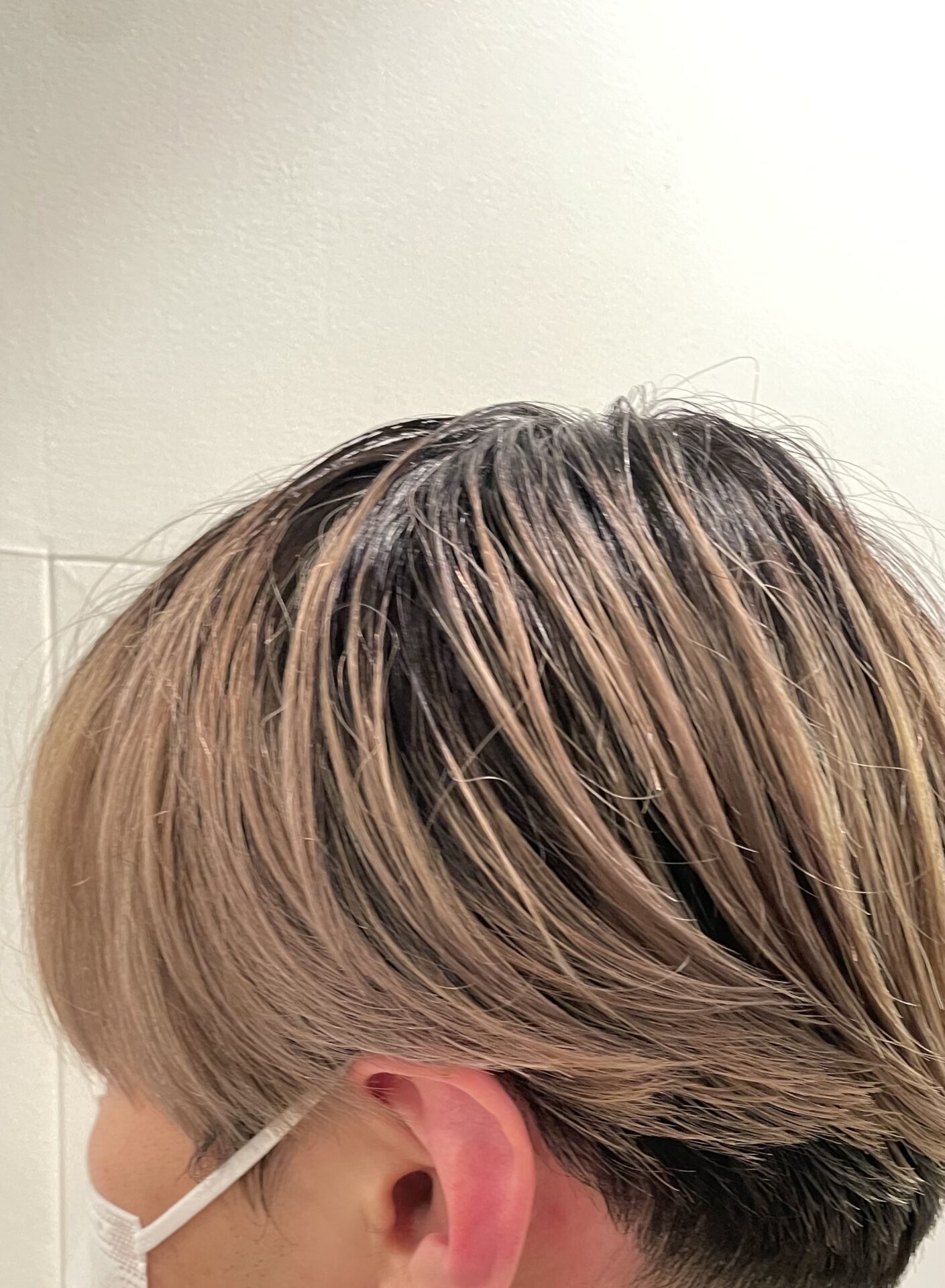 こんな感じで根元の毛と馴染んでメッシュのようなスタイルにできるカラーにして、見ました!