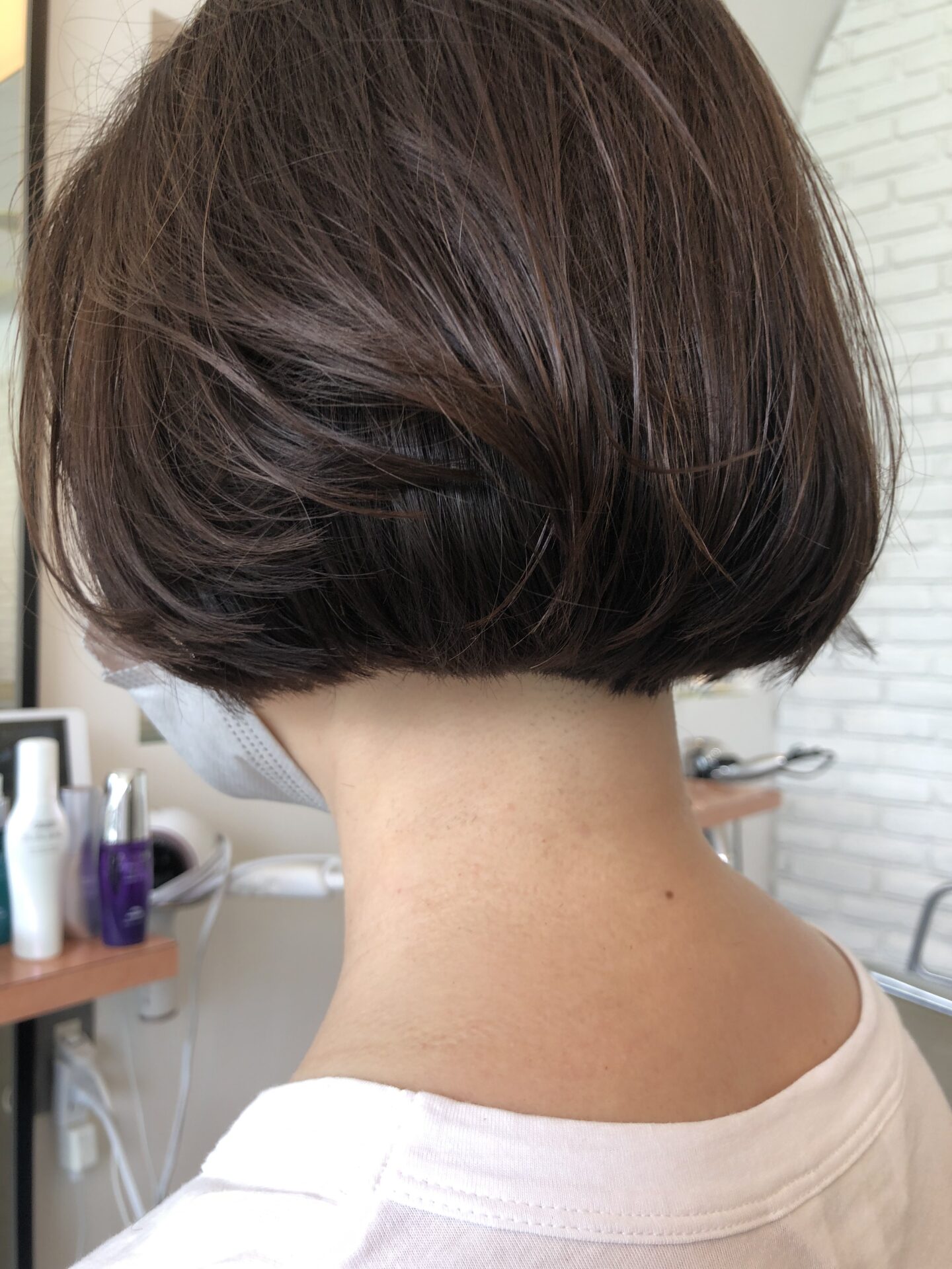 こんなにスッキリボブはいかがですか?ポイントはふっくら重さが残っている短めボブはなかなかSNSでは見ないスタイルなので載せてみます。