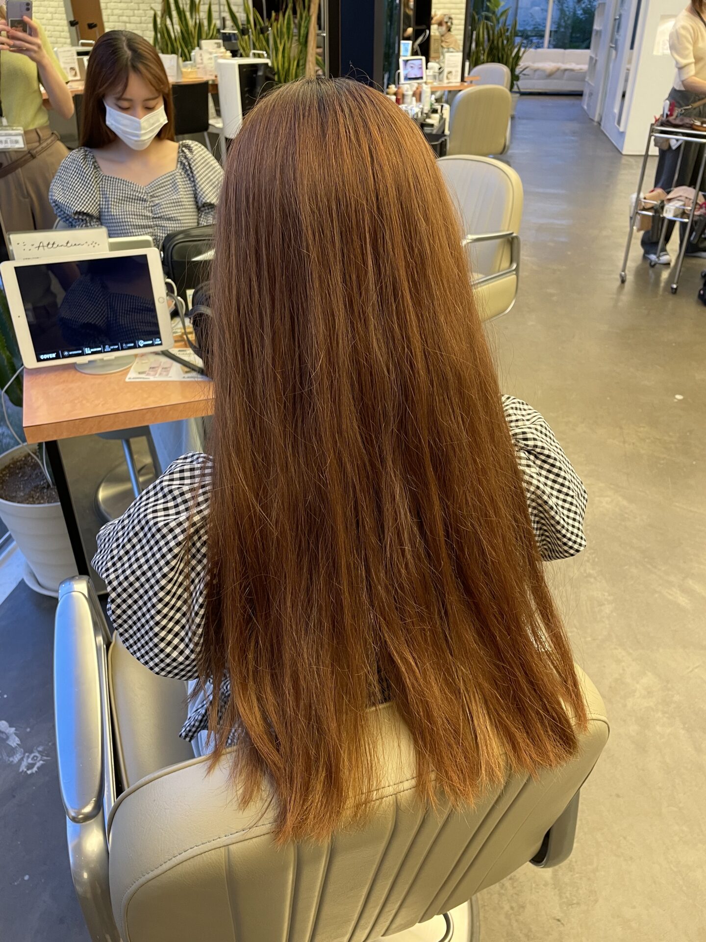 ロングヘアだからこそ艶髪も際立ちますし、さらにテラコッタピンクからーも可愛すぎるので、