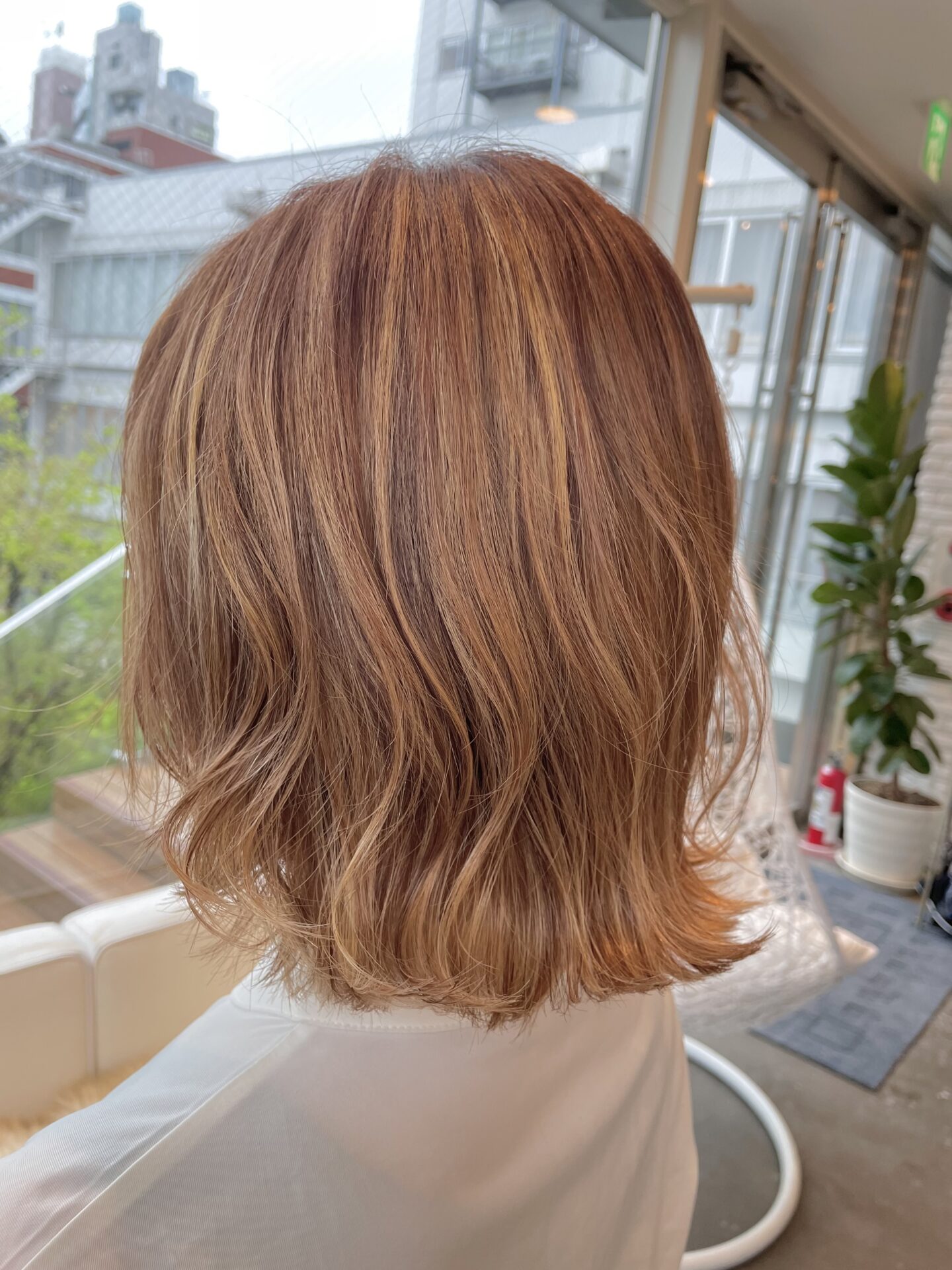 全体をブリーチしなくてもハイライトなら長く明るい髪の毛楽しめますよ☆