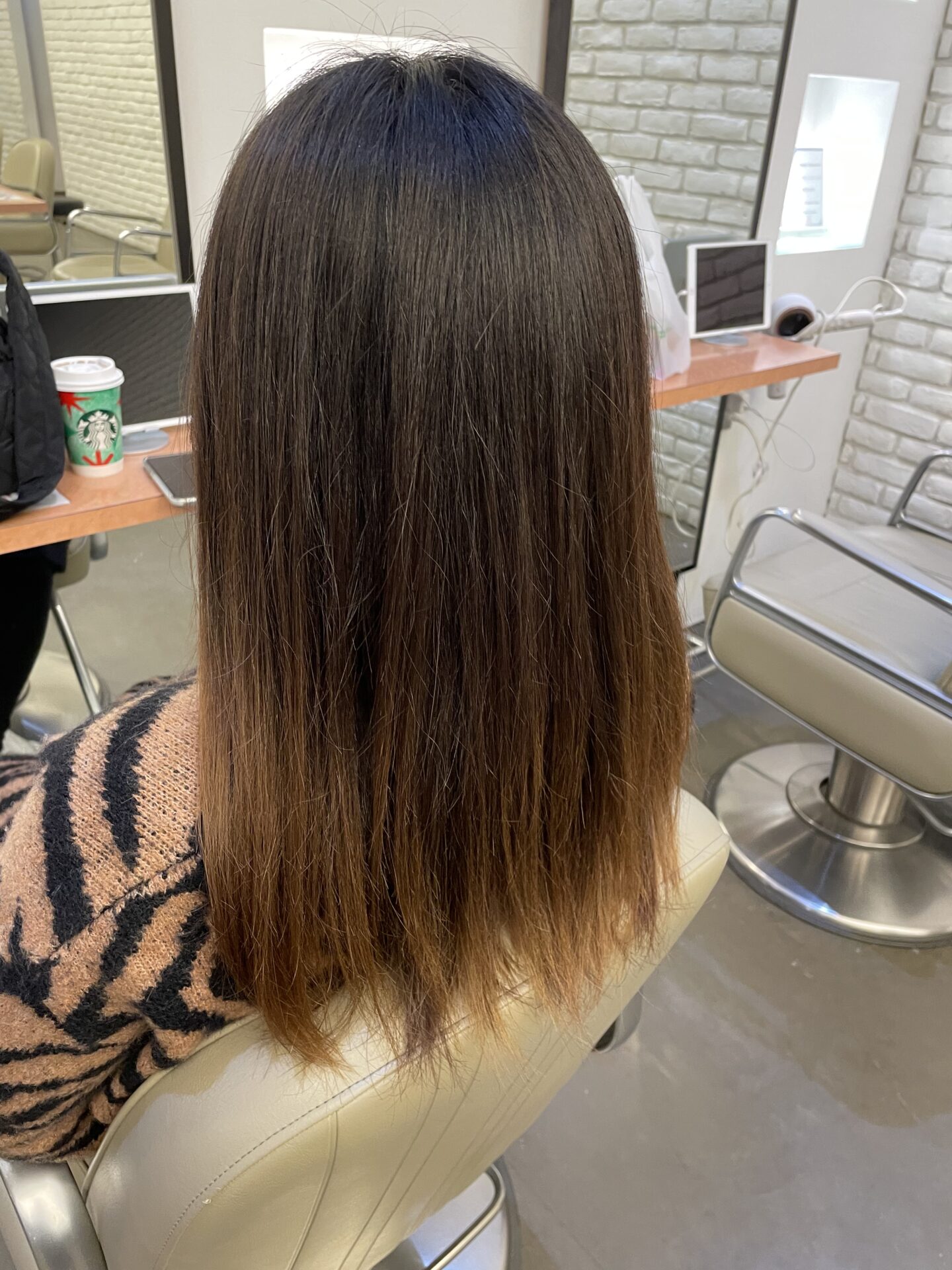 根元から毛先までしっかりと色味が繋がり、落ち着いたカラーでも透け感たっぷり艶髪に仕上がりました♡♡