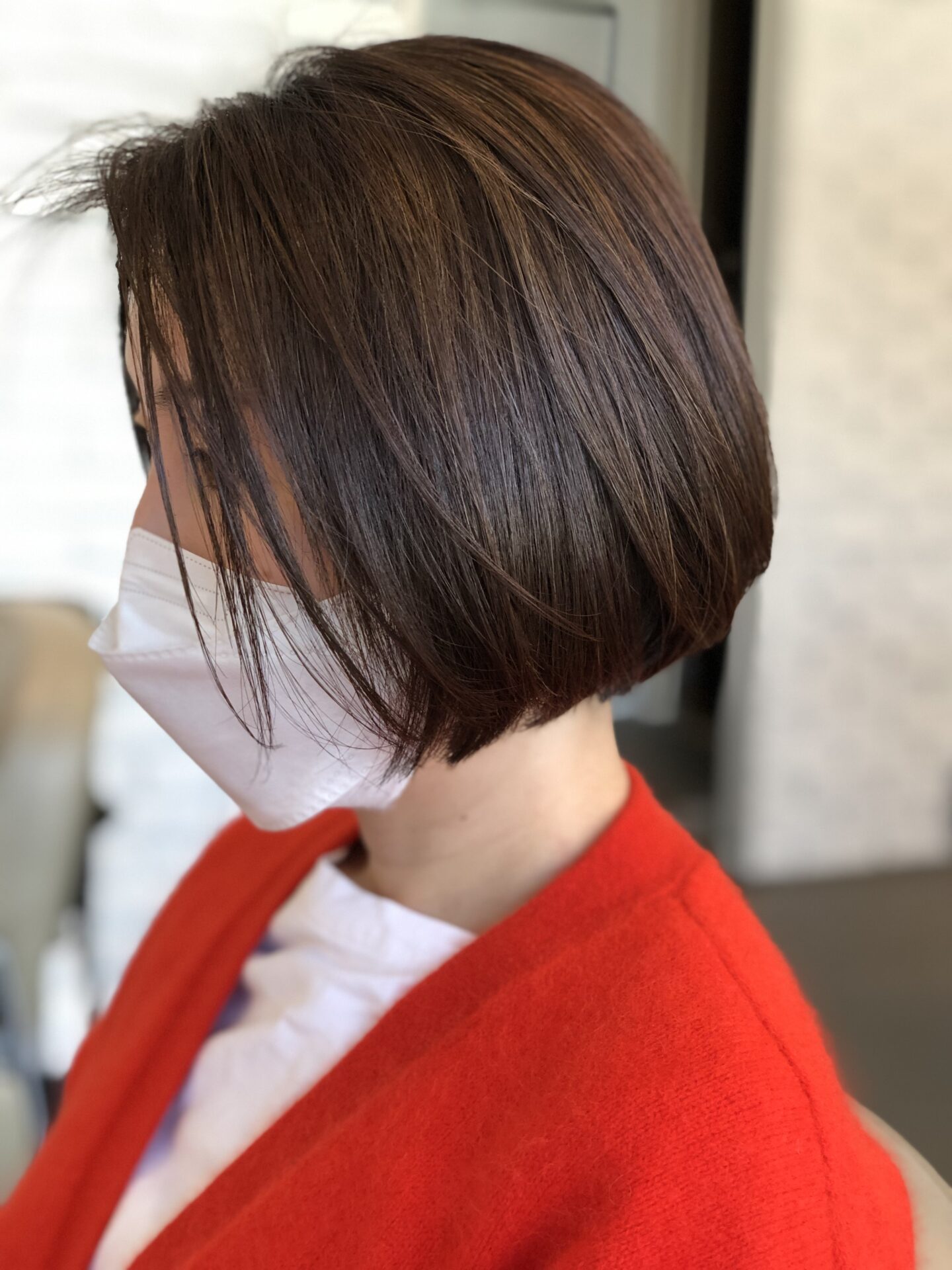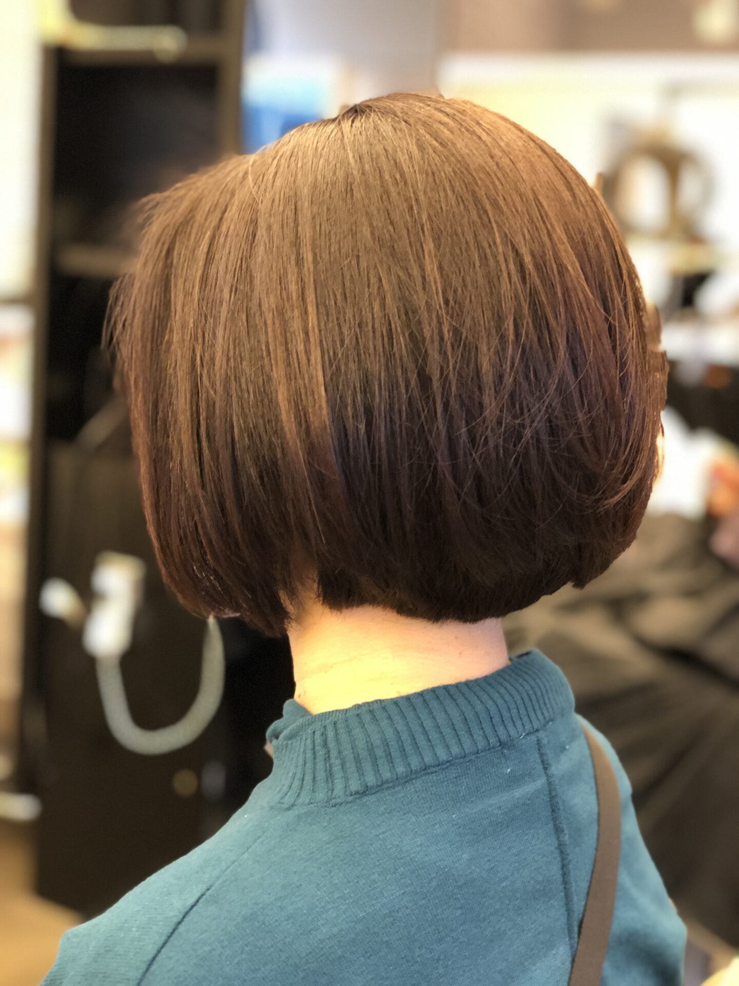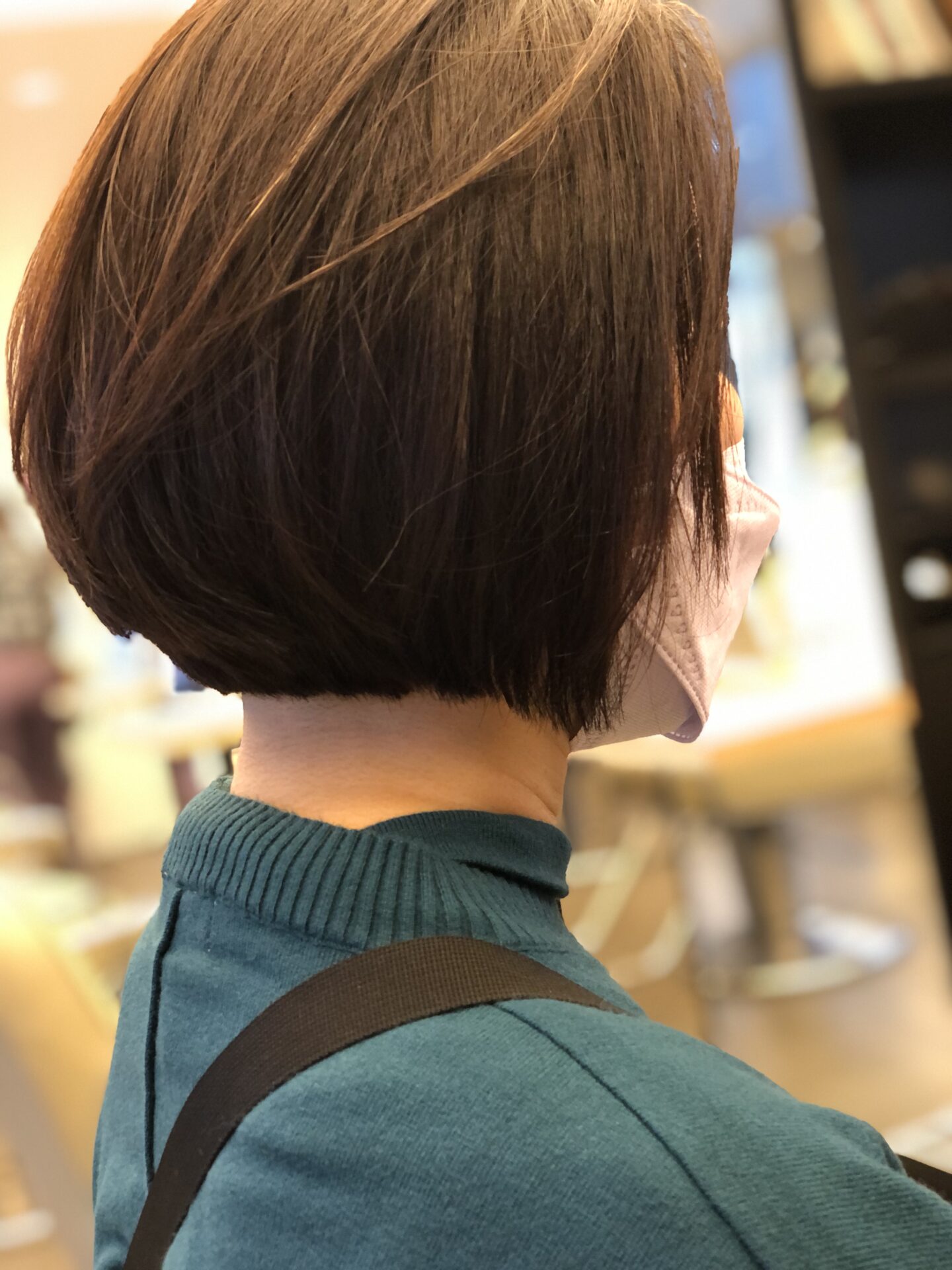 ちょっとすっきり切って前下がりにするとこんな感じのスッキリボブになります。