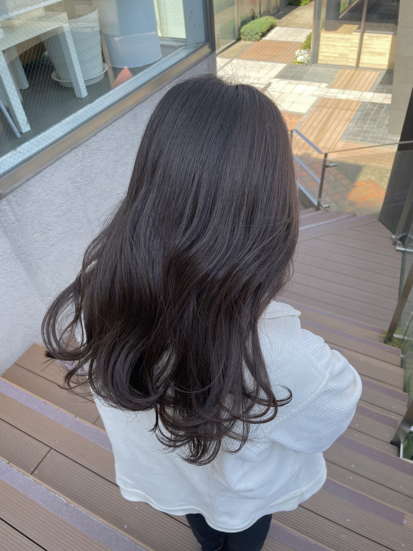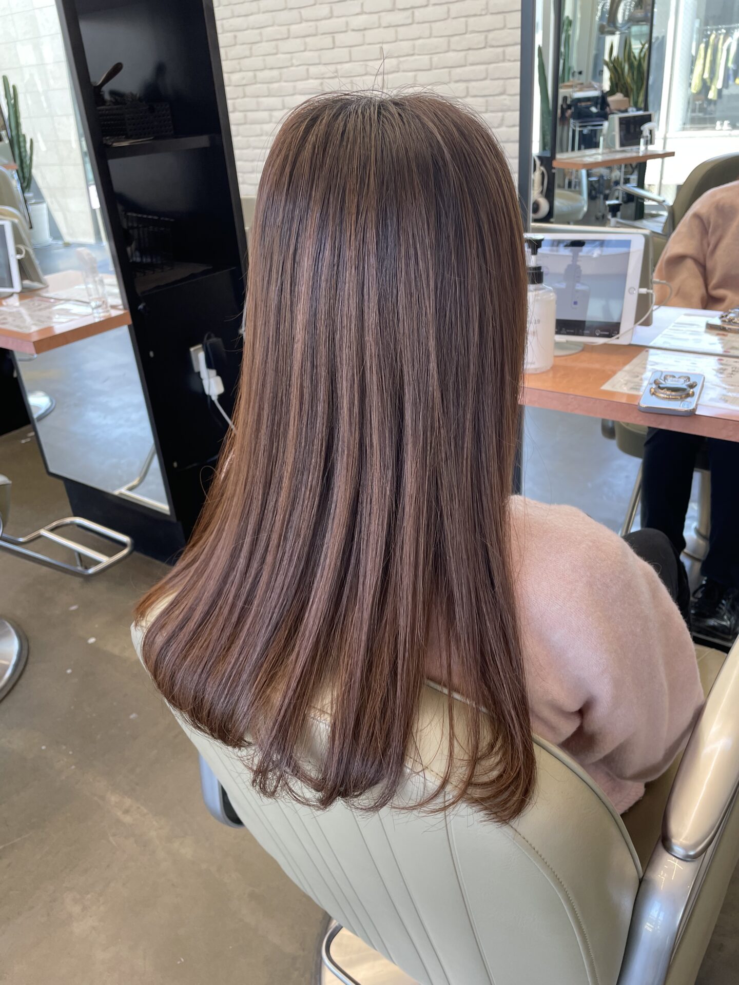 ・明るさのトーンで暗くするのではなく、色味で落ち着いた印象にしているので暗すぎること無く巻いても可愛い柔らかい印象になりました