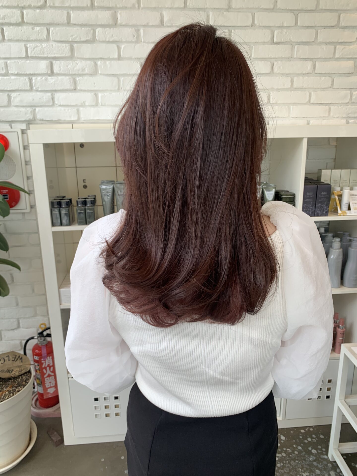 お休み前に来てくださったお客様は、毎回熊本県から来てくださる方で、もう10年以上のお付き合いになります。ずっとベージュ系やアッシュ系のカラーで染めていましたが、ここ最近は反対色のピンクブラウン系で染めていて、それがすごく可愛かったので載せますね♡