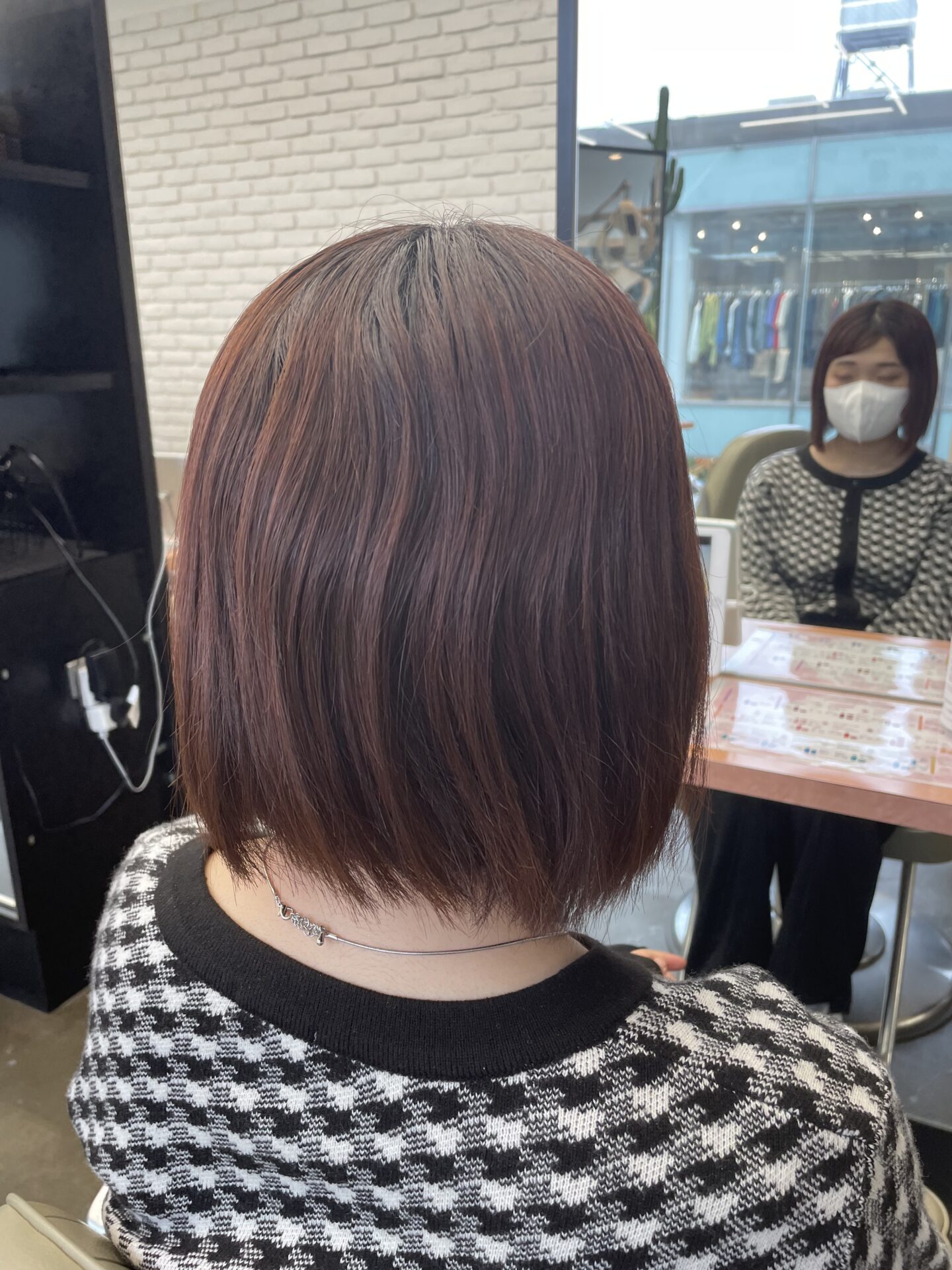 ダメージを考えた薬の選定と、ペタっとしないように塗り方とアイロンを工夫して、、