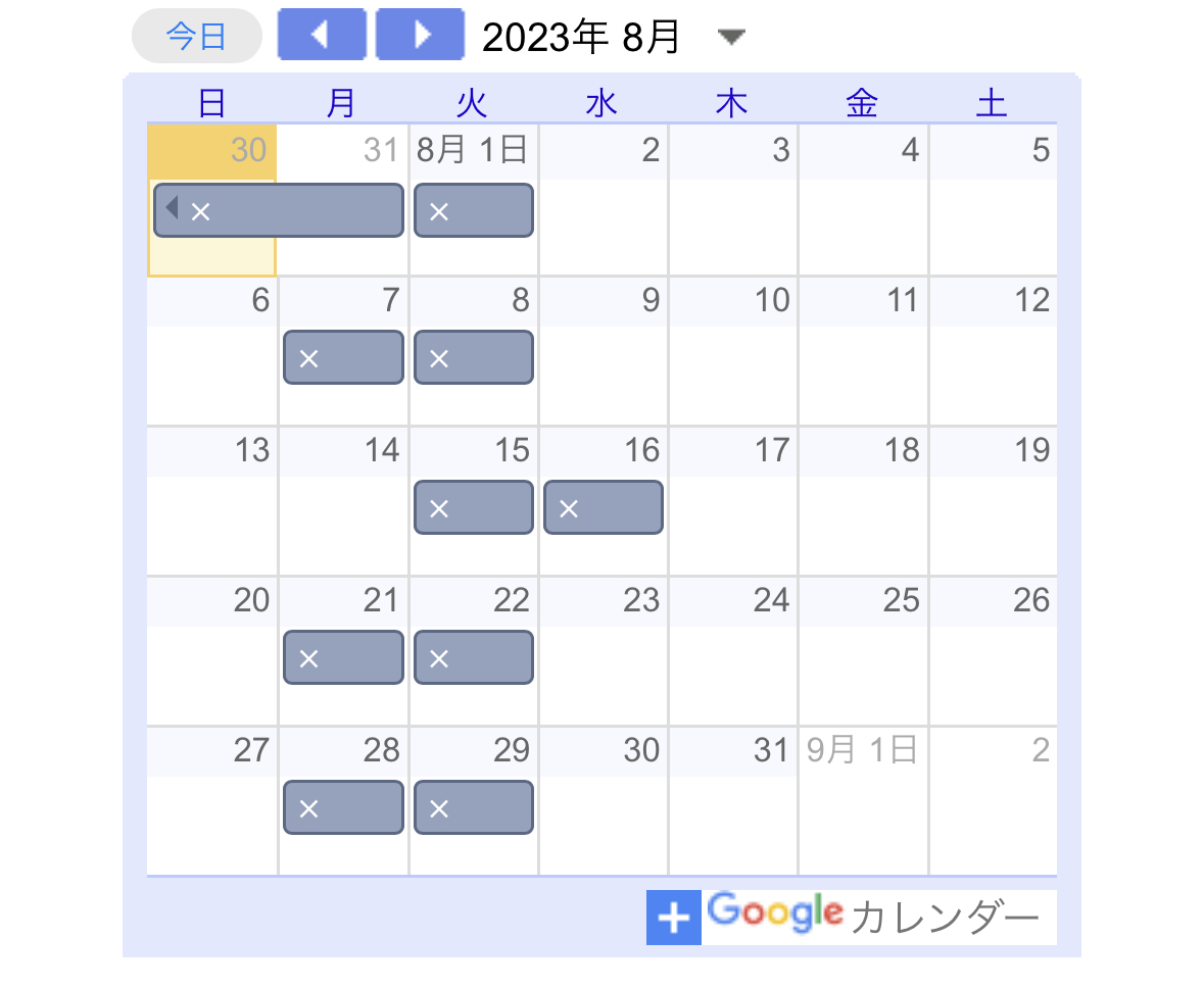 8月スケジュール載せておきます。