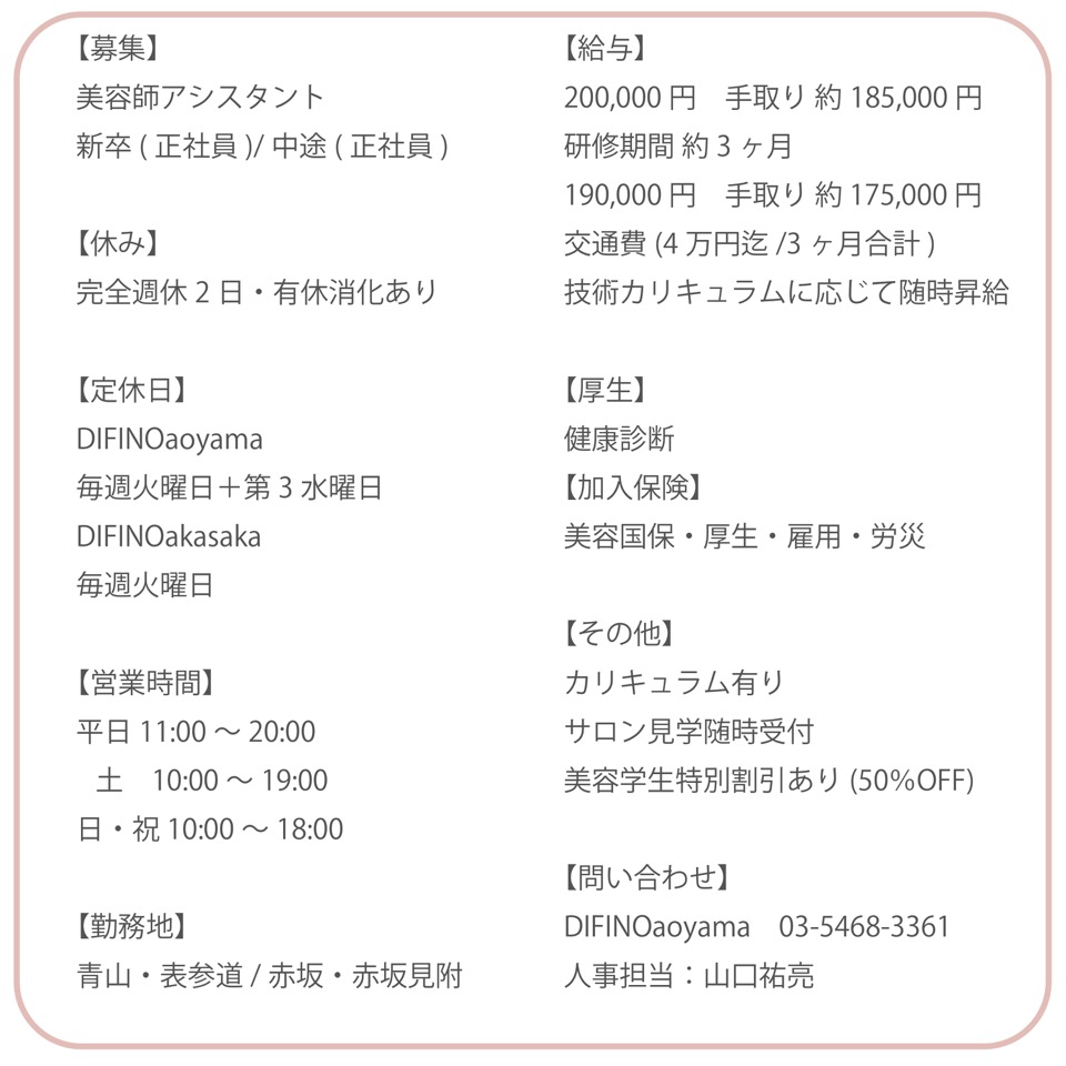 去年までは3月までは4月入社の二年生に向けて募集を行っていましたが、今年から新しい年になったら本当にDIFINOを好きな子に入って来てもらいたいという想いから一年生に向けて面接を行うことになりました♪