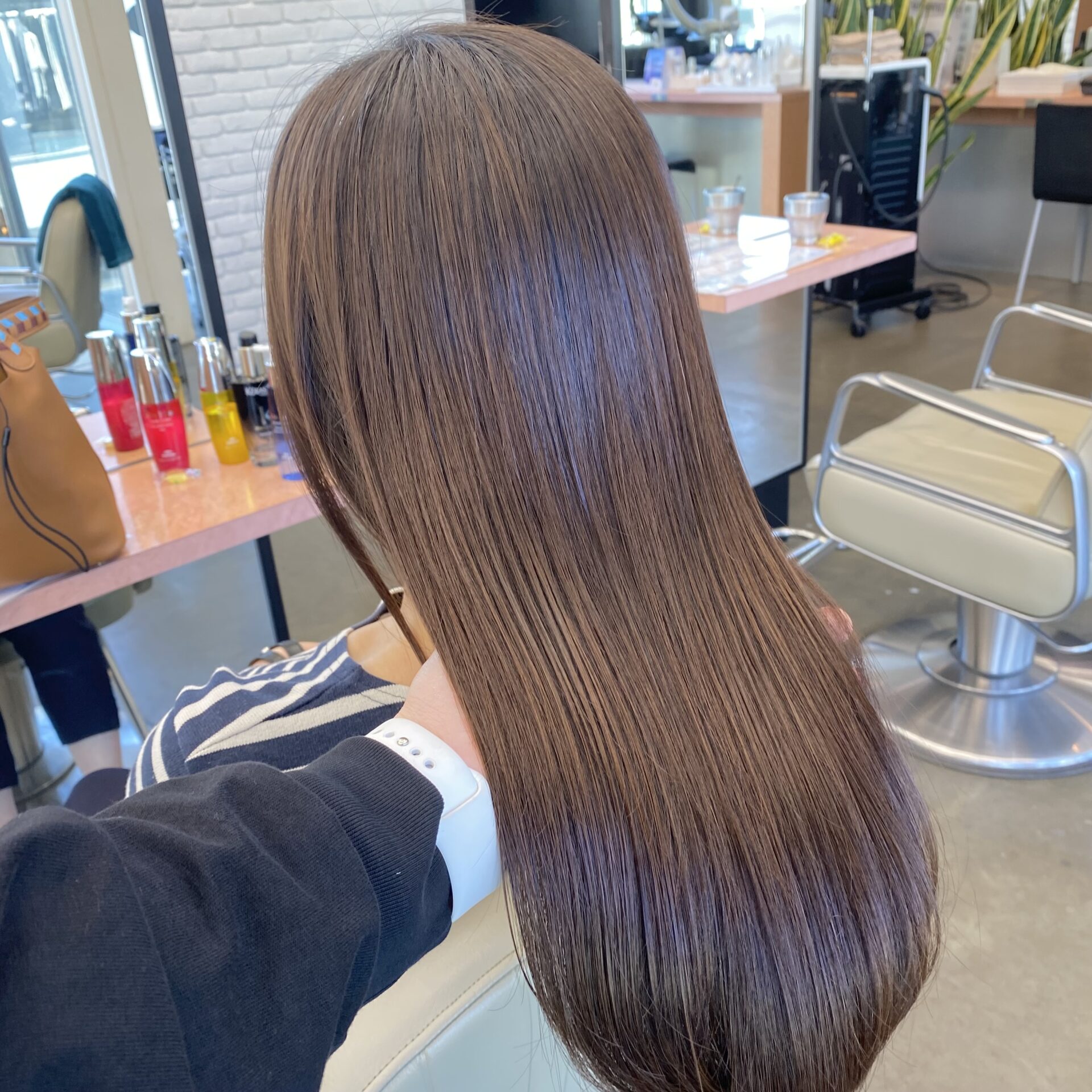 根元のリタッチしかストレートパーマやってないけど毛先までこんなにツヤツヤになります✨✨