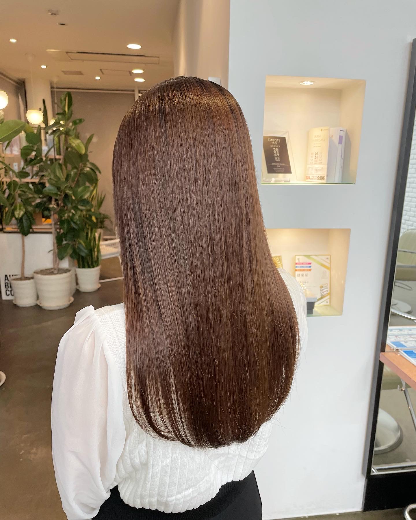 このストレートパーマはお客様一人一人の髪質に合わせて、地毛に馴染むような仕上がりになるので、