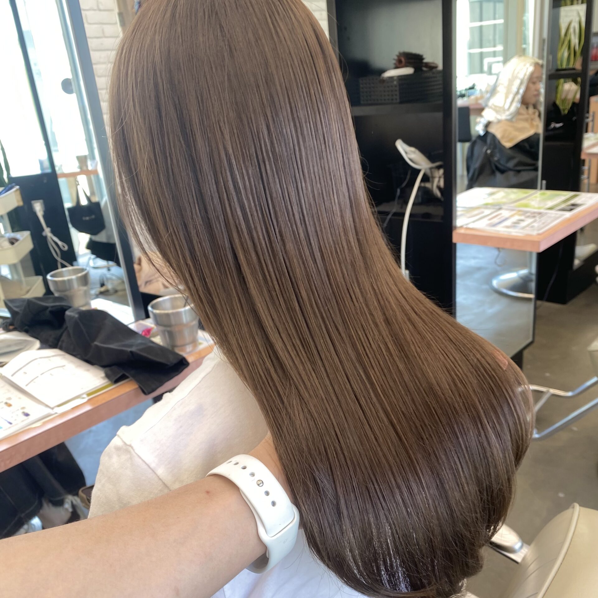 赤味の少ないベージュが髪の毛の透明感をだしてくれます。
