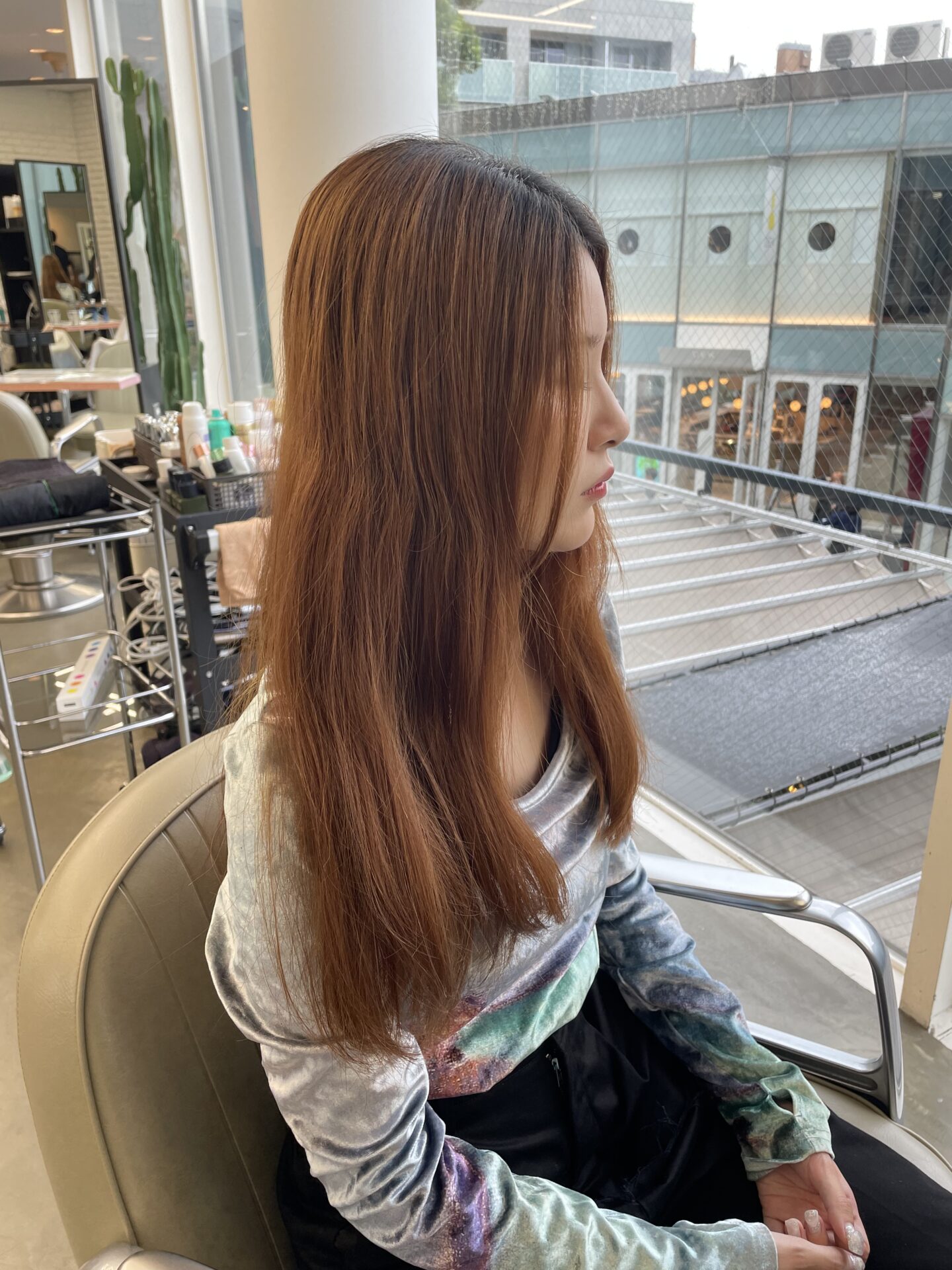 このような暖色系のカラーはブリーチなしでもここまで発色してくれるので、