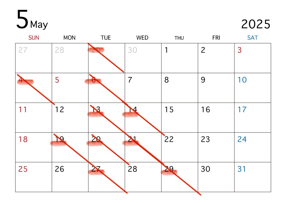 山口の5月のスケジュールです!