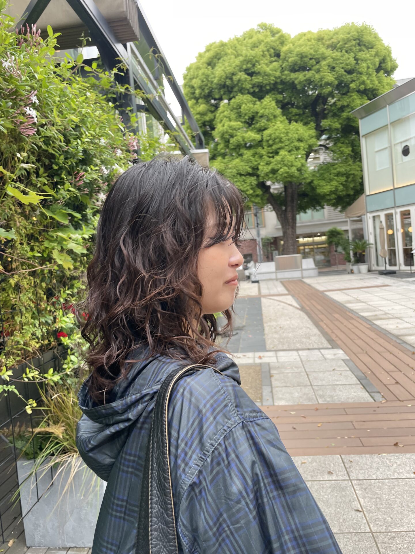モデルさんが前回のカットでかなりレイヤーを入れていたのでそれを生かして顔まわりは内に入るような巻き方で、量が多いのが気になるみたいだったので後ろの髪は根本から巻かず毛先にカール感を入れました!