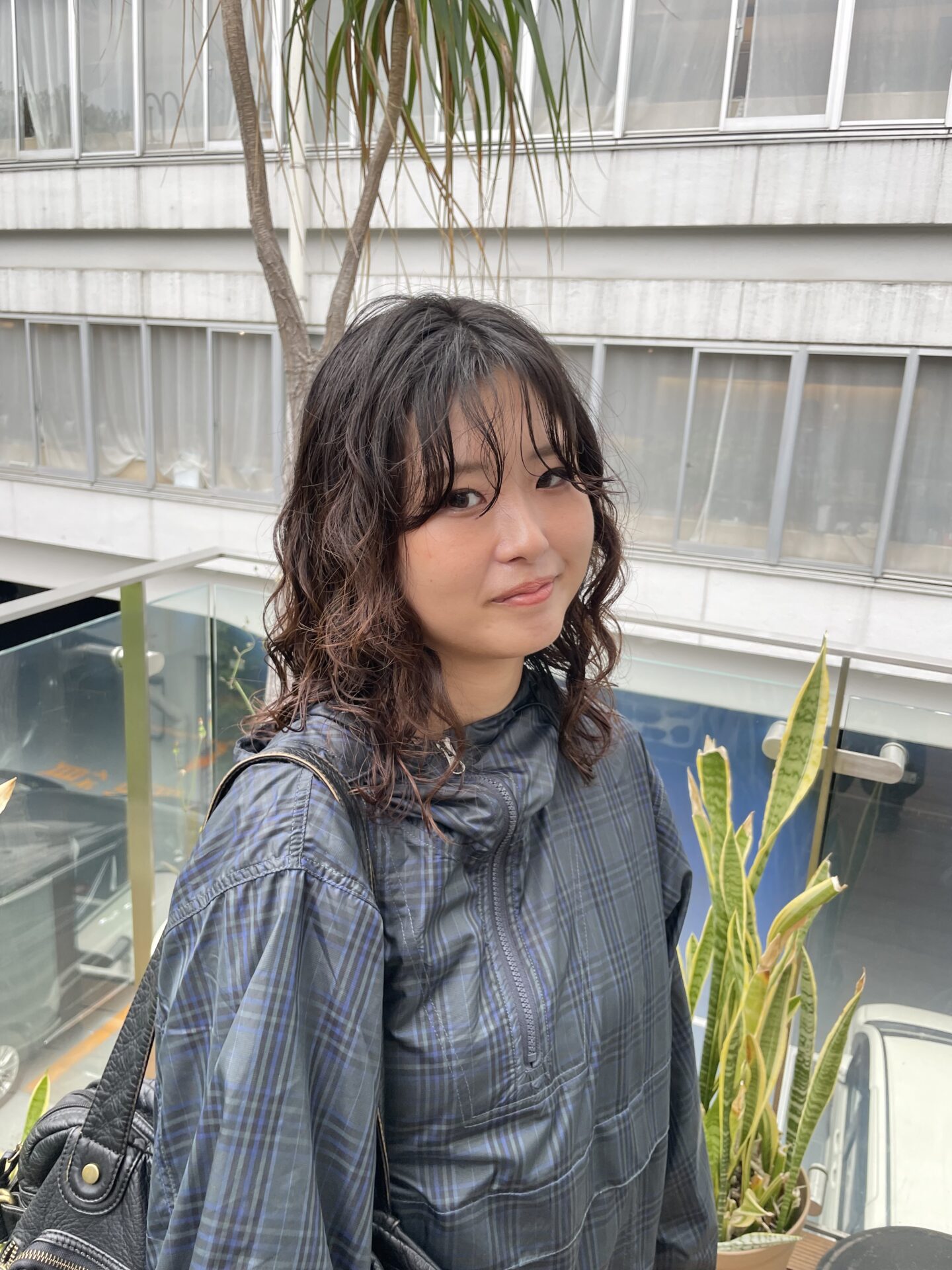 モデルさんが前回のカットでかなりレイヤーを入れていたのでそれを生かして顔まわりは内に入るような巻き方で、量が多いのが気になるみたいだったので後ろの髪は根本から巻かず毛先にカール感を入れました!