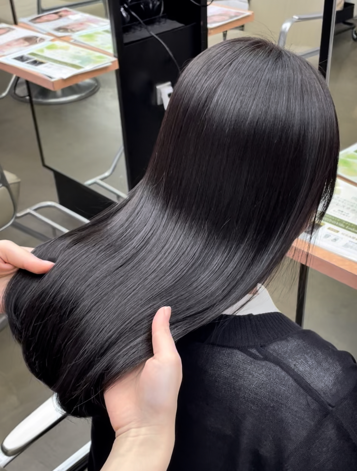 髪質改善ストレートパーマでうねりや広がりが抑えられ、乾かしただけでこのツヤが誕生しました!!