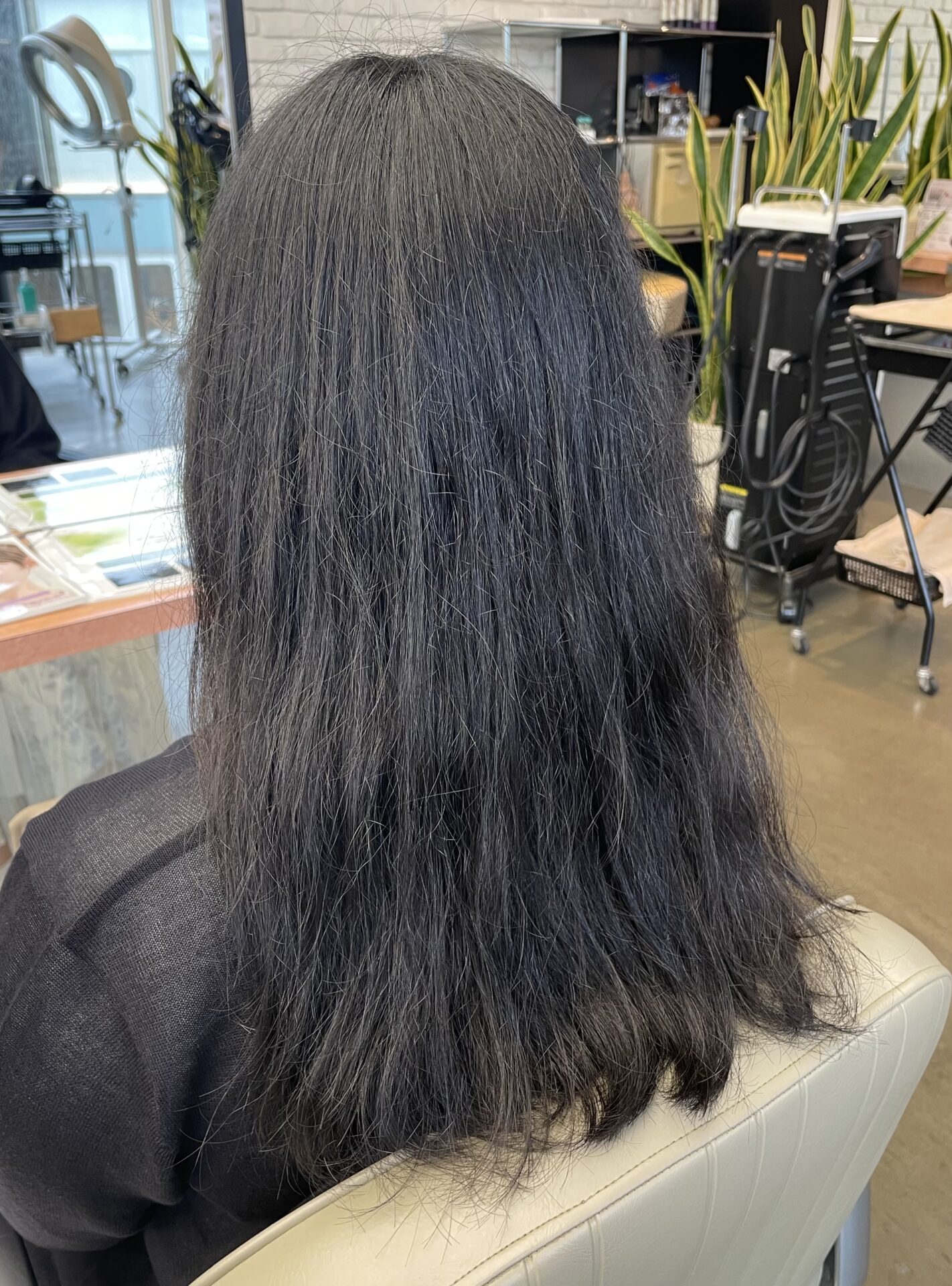 こちらの状態から髪質改善ストレートパーマとオリジナル配合カラーで大変身させていきます!!