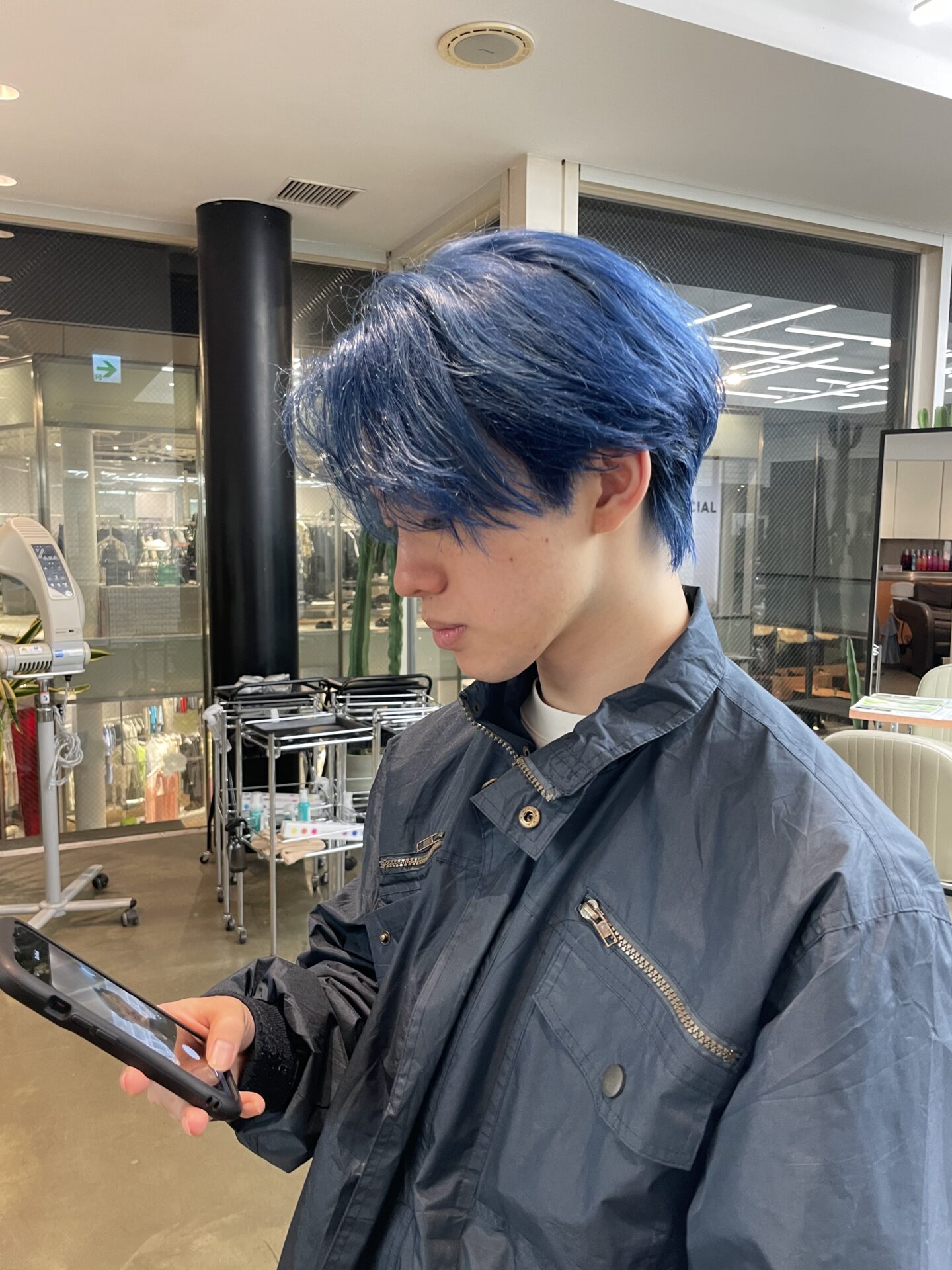 ブルーはブリーチカラーの中でも特に難しく、しっかりとブリーチで髪の毛の黄みを抜いてからでないと緑色に近くなってしまいます。