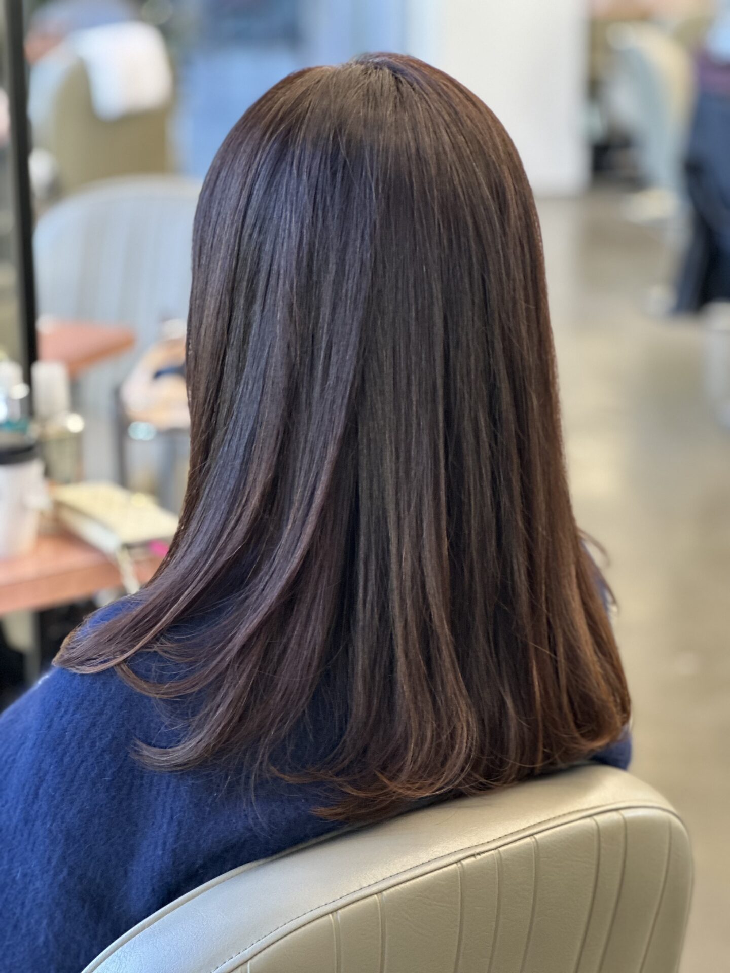 今回の写真の方はもう3年以上かけて髪型を直して久しぶり2年ぶりのストレートうなりも強く毎月のカラー履歴それを理解しながら薬剤選びをして施術しました。