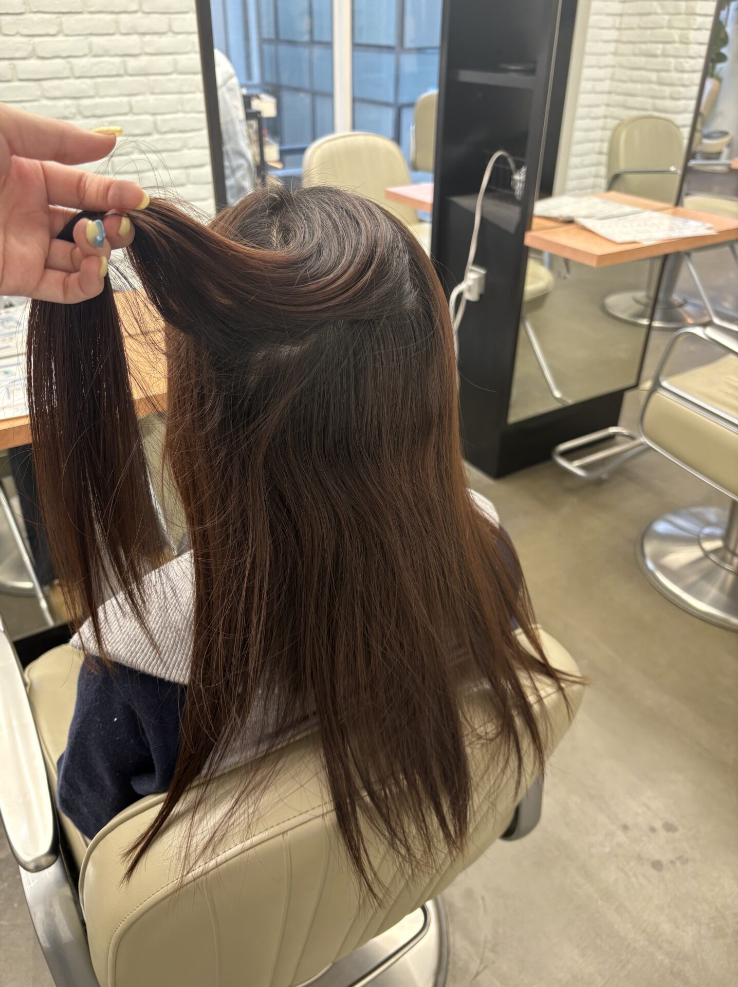かなり細くて柔らかい髪で薬の配合を間違えると切れてしまいそうだな、、と心配していました。