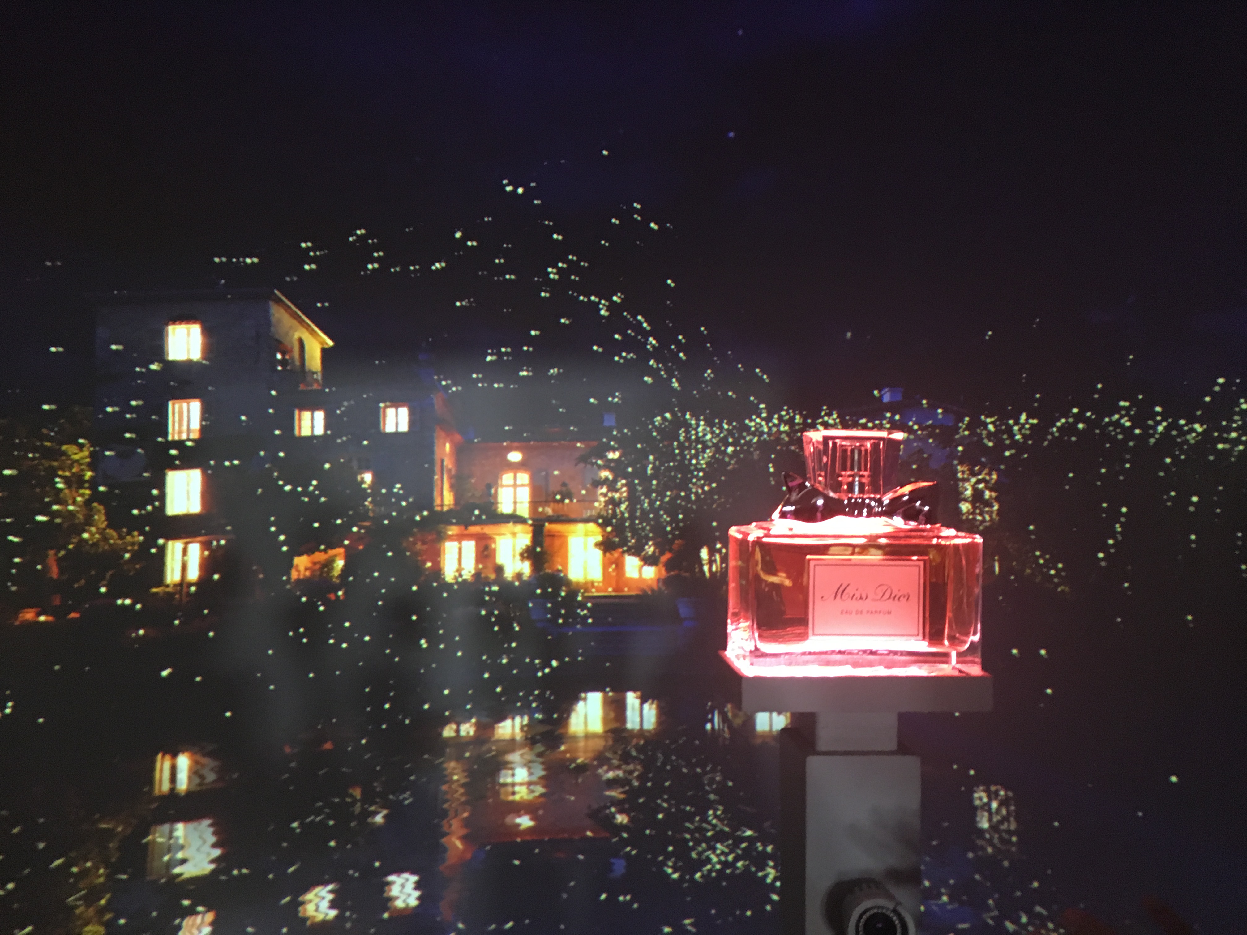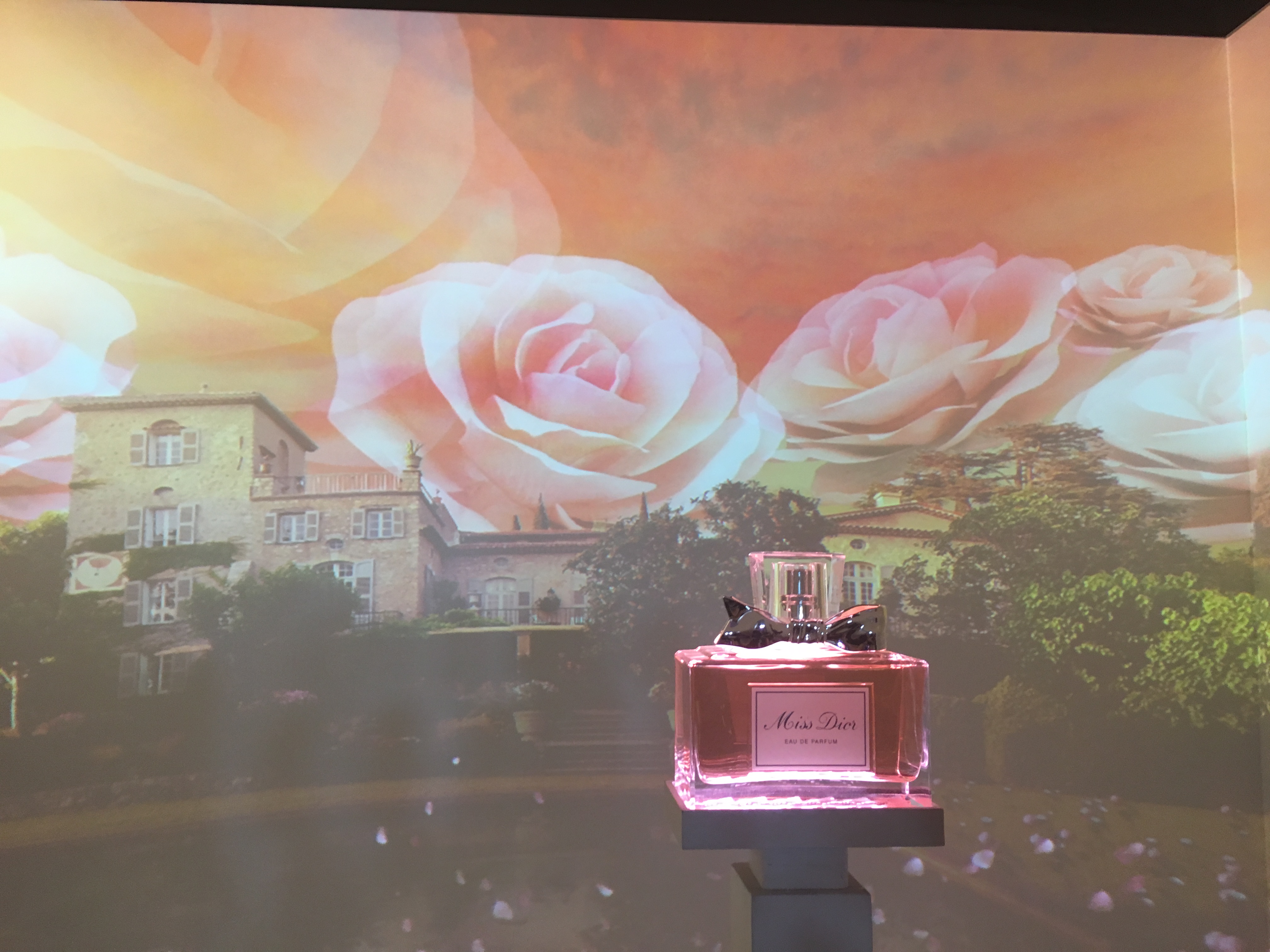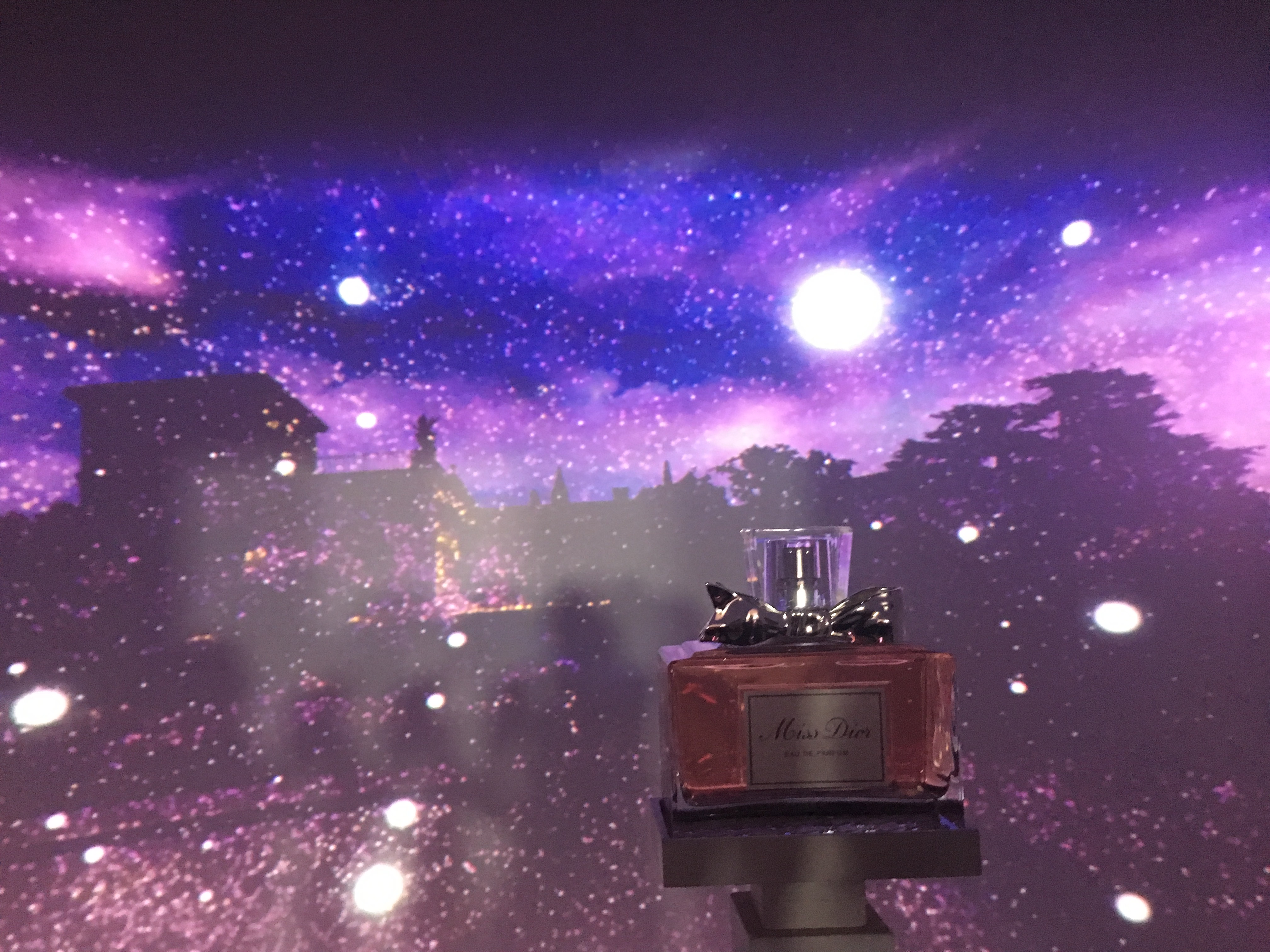 パーティー会場では 朝、昼、夕暮れ、夜など一日のどの時間にもこの香水が合うような映像が流れていて自分の手をかざすと光が動いたり、とても幻想的な空間の個室があり素敵でしたよ☆