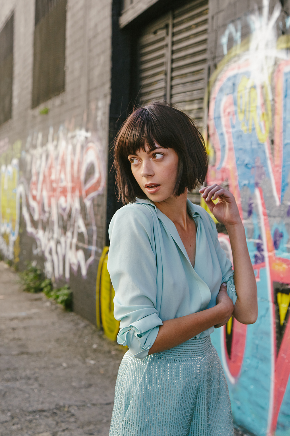 倉庫街のアートに囲まれてのシューティング。